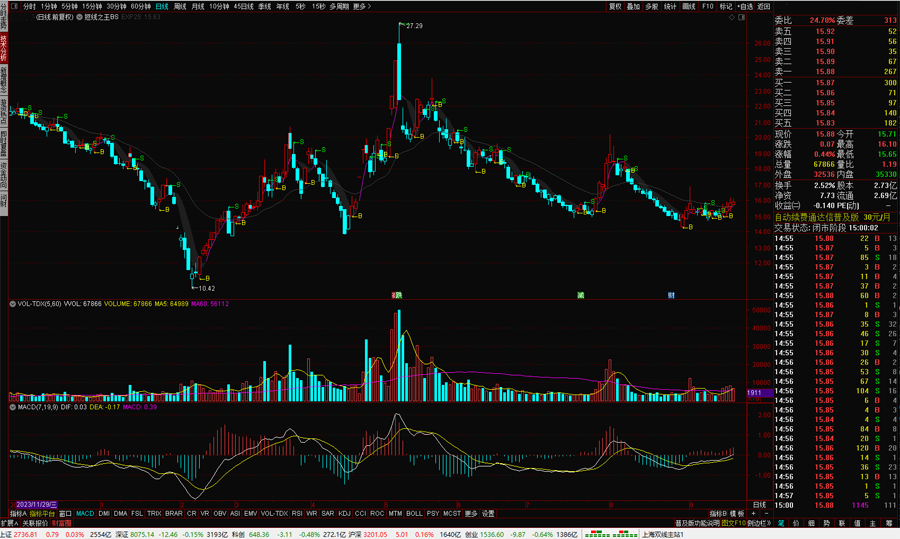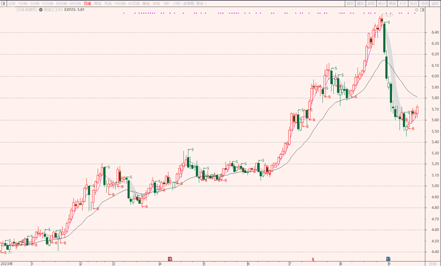 随意翻找一个日K线的短线之王BS,效果如图: