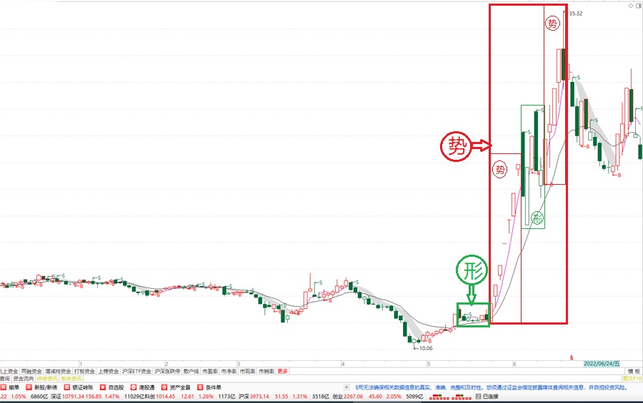 “形”是多空双方中的一方可能胜出,“势”是多空双方中的一方已经胜出;