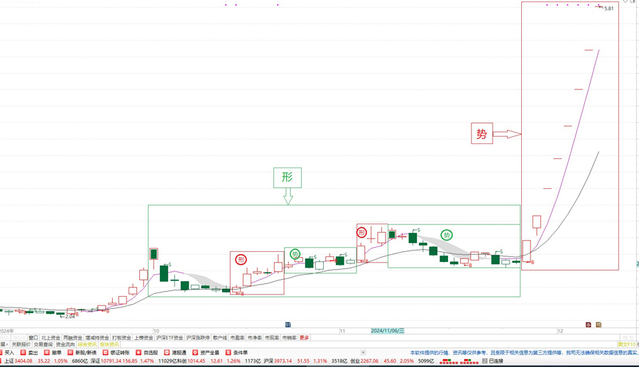 “形”是对价格涨跌的预测,“势”是对价格涨跌的验证;