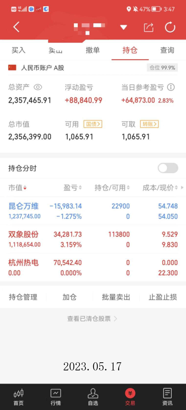 水哥割股2023年淘股吧实盘贴-2023年5月8日~5月31日