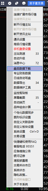 测评前,需要下载至少1年以上的历史数据,测评的准确性,最少需要1年再往前100天的数据。通达信股票软件中,点击左上方的“系统”→点击“盘后数据下载”→勾选“日线和实时行情数据”→设置所要下载的日线数据→点击“开始下载”。