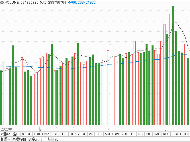 VOLUME:VOL,VOLSTICK; MA5:MA(VOLUME,5); MA60:MA(VOLUME,60);