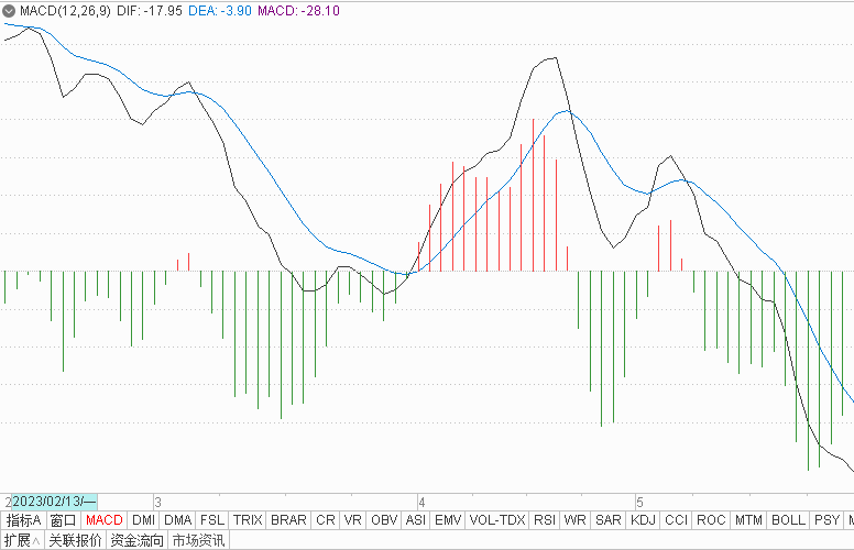 SHORT:=12; LONG:=26; MID:=9; DIF:EMA(CLOSE,SHORT)-EMA(CLOSE,LONG); DEA:EMA(DIF,MID); MACD:(DIF-DEA)*2,COLORSTICK;