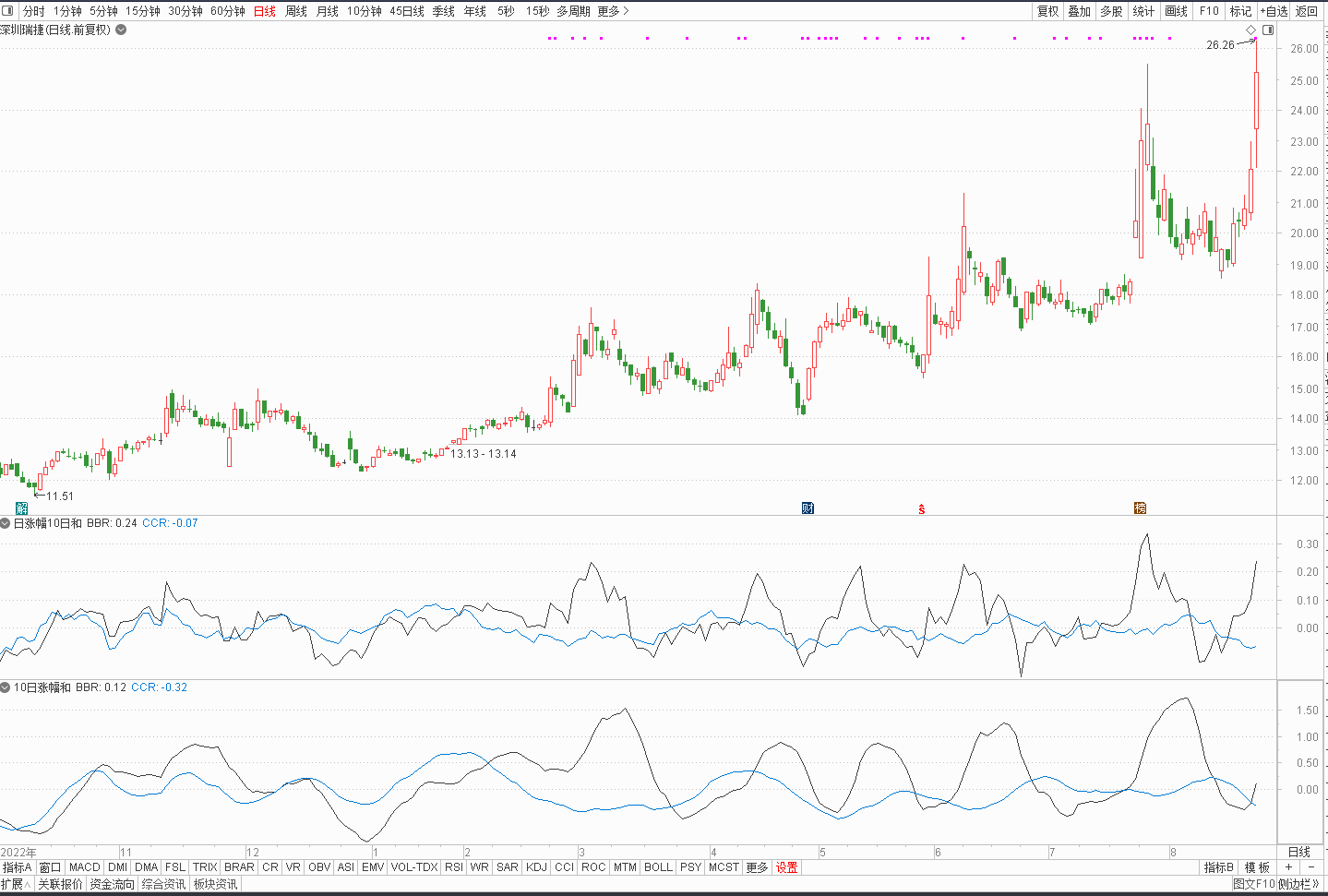 一种是收盘价和前1天收盘价比较涨幅,求10天的和,公式名称为: