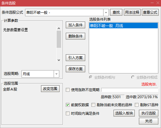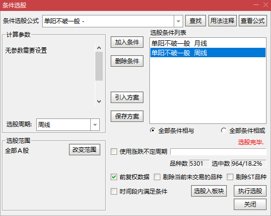 (2)单阳不破选股公式在熊市尽量使用日线级别,由于胜率都在50%左右及以下,需要设置好止损价位,控制风险;