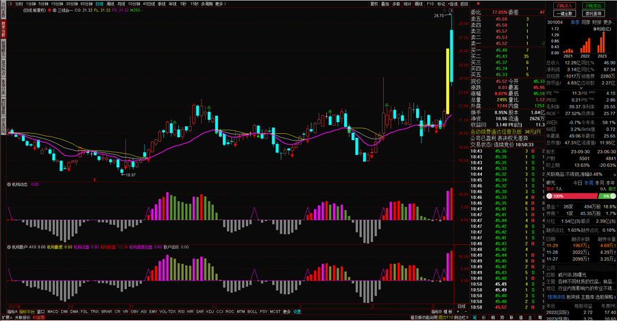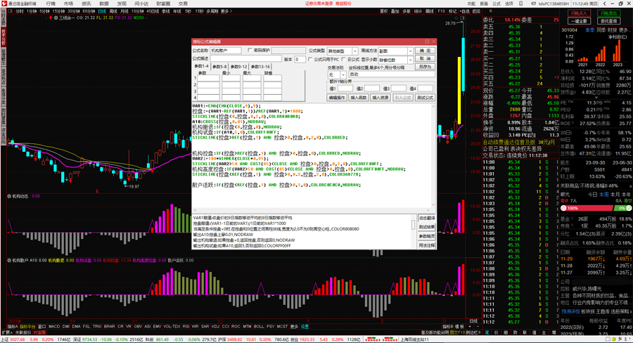 为了区分,把公式取名为机构散户,并把一些主要动态显示出来,代码如下,供公式爱好者互相探讨:
