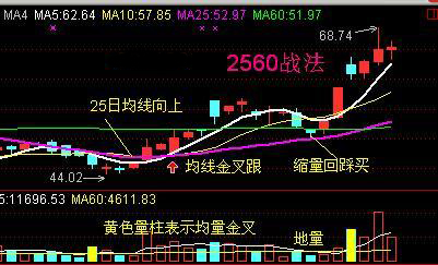 看了上面的叙述,你应该知道什么是2560了,即为25日均线和60日量线。这就是“2560战法”。