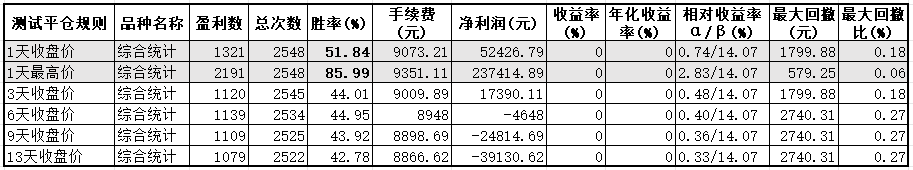 测试结果第二天冲高可达85.99%,第二天收盘价胜率51.84%
