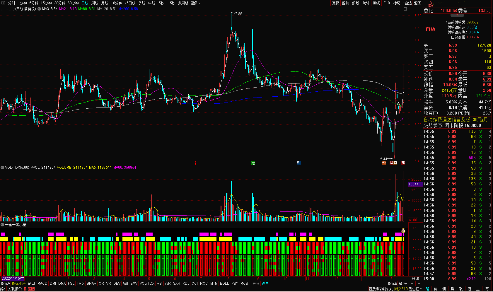 六个经典技术指标 : 1、MACD、KDJ、RSI、LWR、BBI、MTM6个指标。 2、还有流通市值、主力控盘度等指标。
