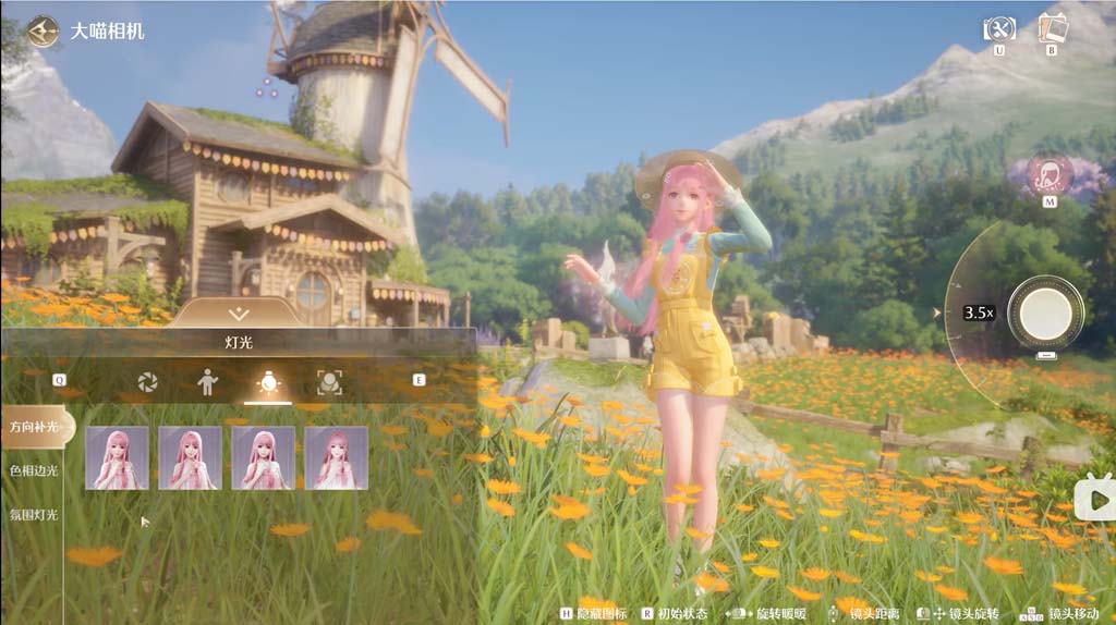 拍照系统可进行滤镜、光影、补光、光圈调节、隐藏暖暖等操作,动作有静态、动态等